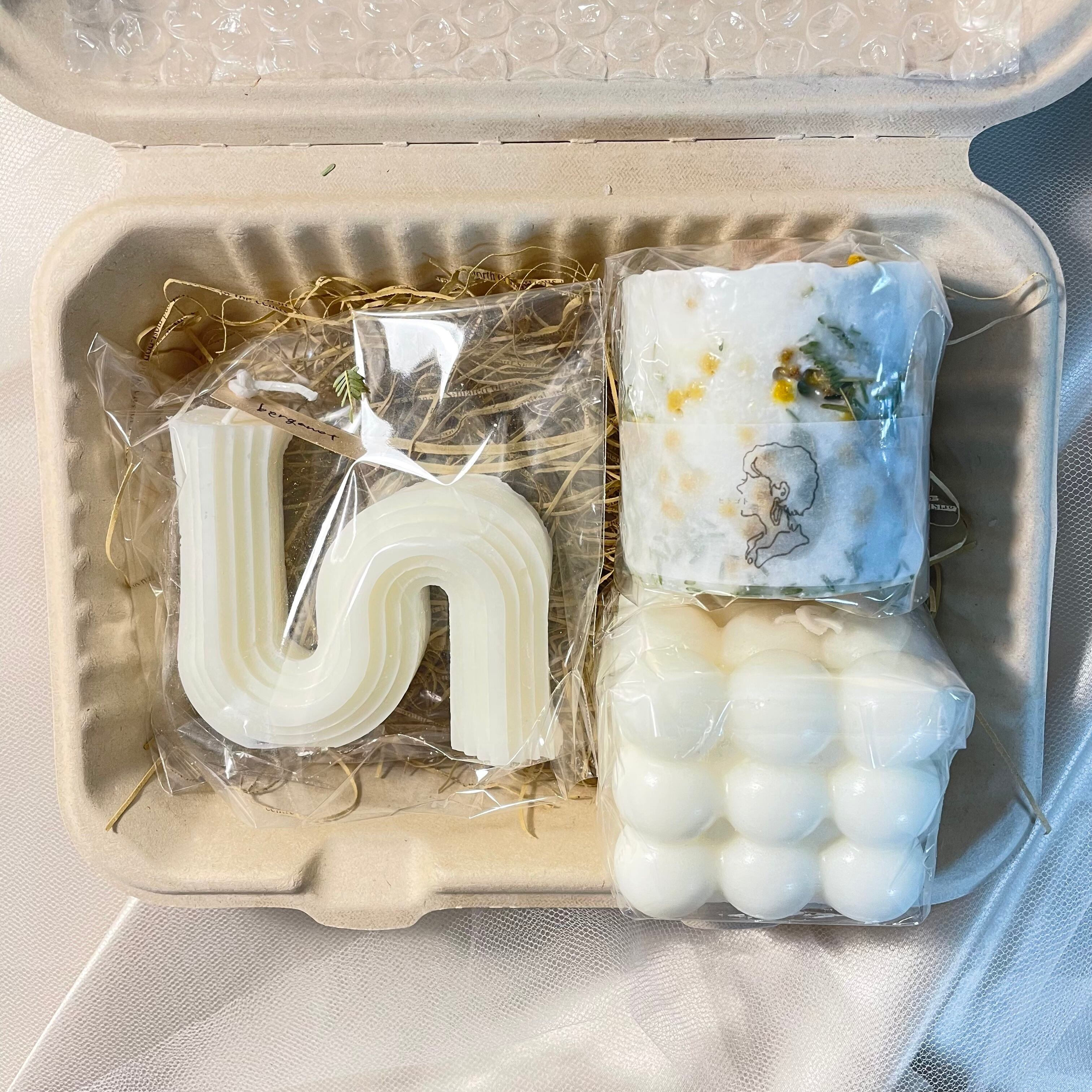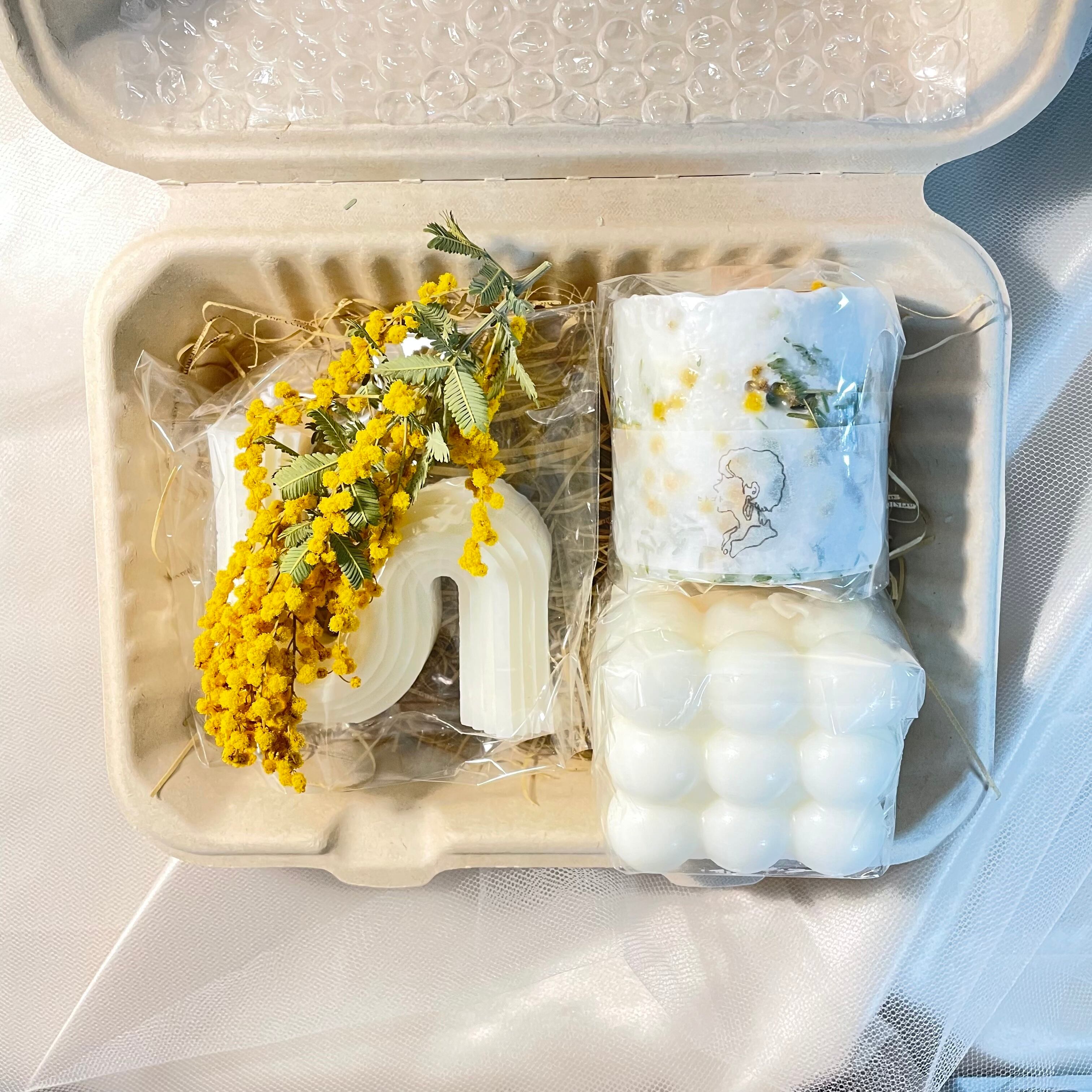 今回はうねりのキャンドル、ミモザのキャンドル、ボンボンのキャンドルを合わせてギフトにいたしました。