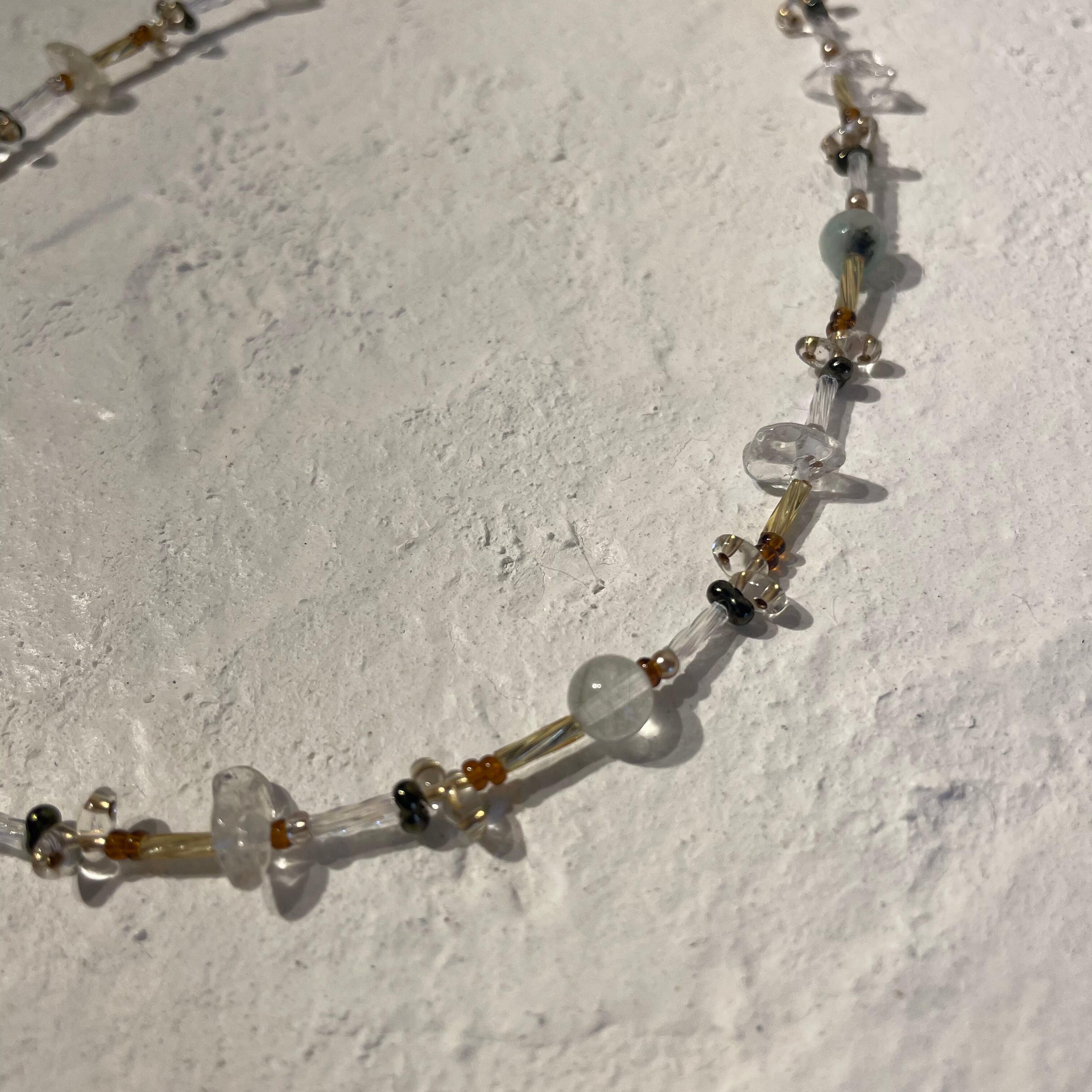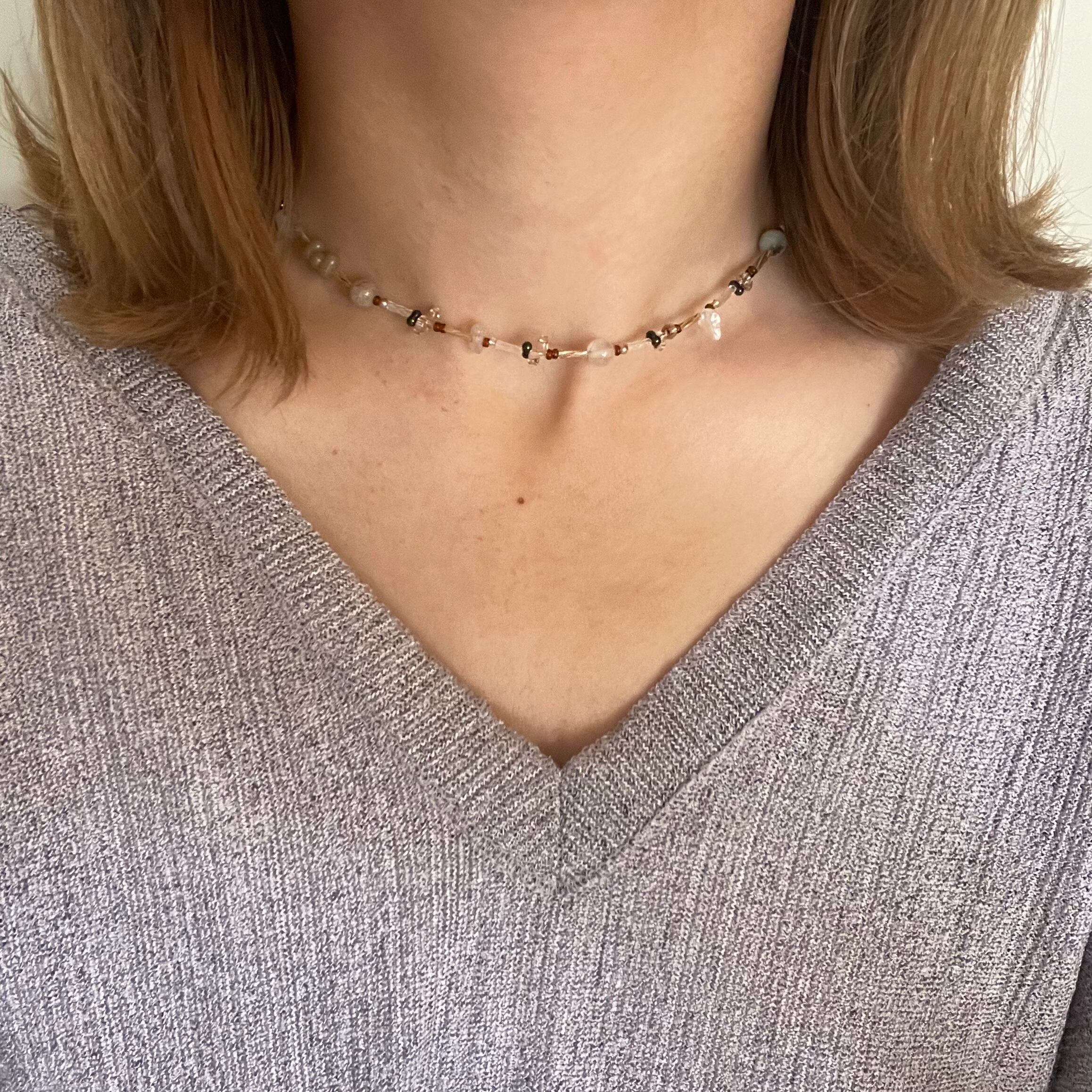 天然石とビーズを組み合わせた、個性的なネックレスです。